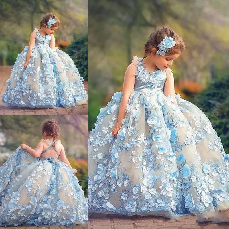 Vestidos De Chica De Flor Azul Cielo De Encaje Mullido Para Tul Vestido Sin Mangas De Apliques De Nina De Primera Comunion Vestidos De Desfile Vestidos Floreados De Nina Aliexpress